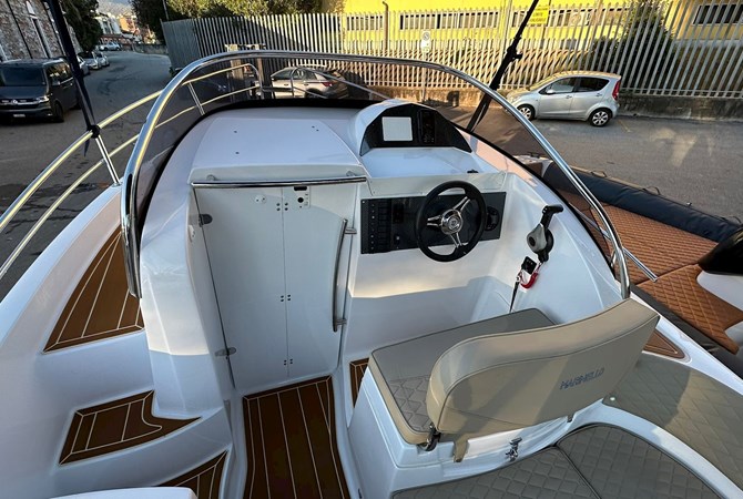 salpa ancore elettrico, tendalino con roll-bar, luci pozzetto, frigo, wc elettrico, fornello teak su tutta la barca, leverismo a scomparsa, strumentazione digitale, radio, prolunghe prendisole posteriore, motore Yamaha f40/70 senza patente, corrugato protezione cavi..