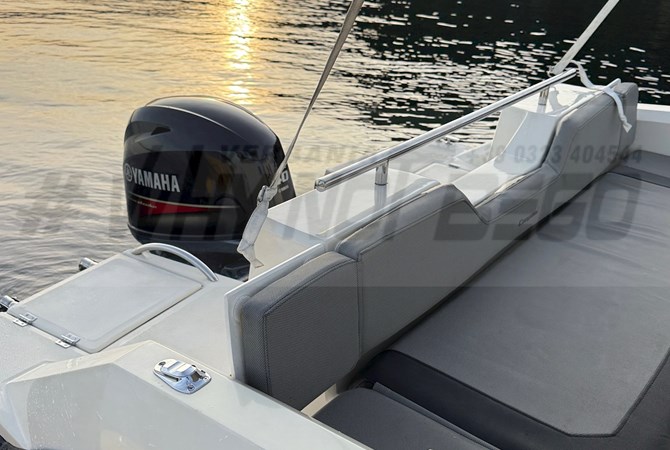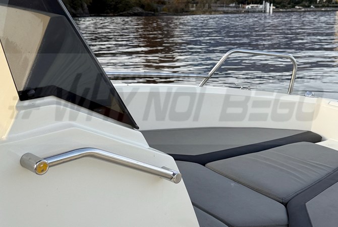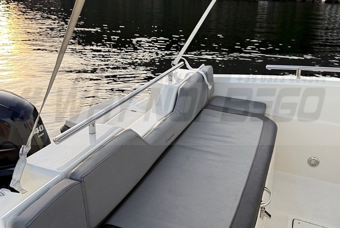 Dotazioni principali: Corrimano a prua maggiorati Illuminazione a luci LED Pozzetto autosvuotante con sistema di sicurezza Sedile poggia-reni biposto
